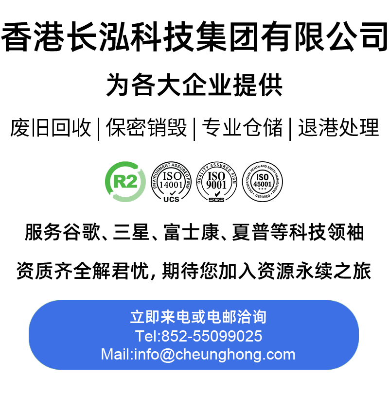 三十多年来,我们以香港为枢纽,在全球多地设立回收处理公司,年处理超10,000公吨电子废弃物、工业危废及报废设备。服务谷歌、三星、富士康、夏普等科技领袖的可持续供应链。